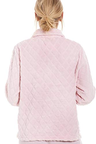 Camille Womens Supersoft Fleece Bed Jacket | Luxury Collared Warm Sleep Coat | Button Up & Long Sleeved | Warm & Cosy All Night Long | Autumn or Winter Wear Over Pyjama Top | Diamond Pink 22-24