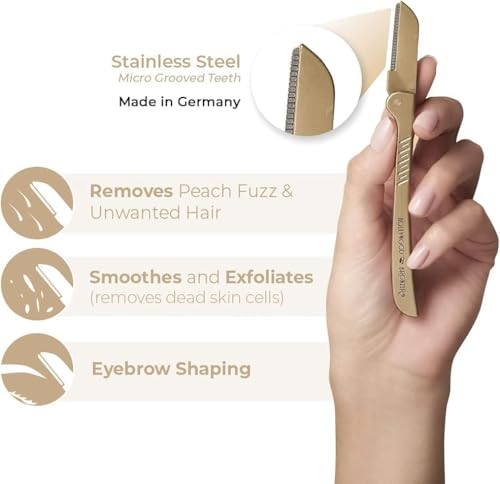 Hollywood Browzer Eco-Friendly Dermaplaning Razor - Eyebrow Shaping & Peach Fuzz Removal - Exfoliating Face Razor for Women - Facial Hair Remover & Dermaplaner Tool - Gold