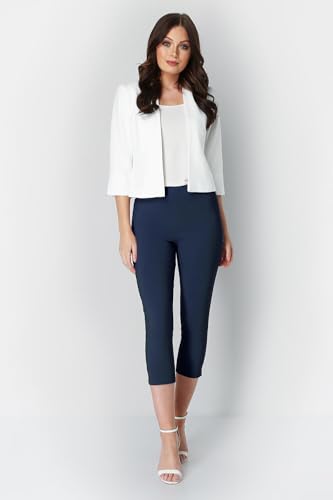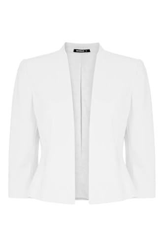 Roman Originals Bolero Jacket for Women UK Ladies Shrug Tailored Rochette Suit Blazer Formal Wedding Guests Crepe Crop Stretch Smart Cover Up Office Work Slim Edge to Edge - Ivory - Size 18