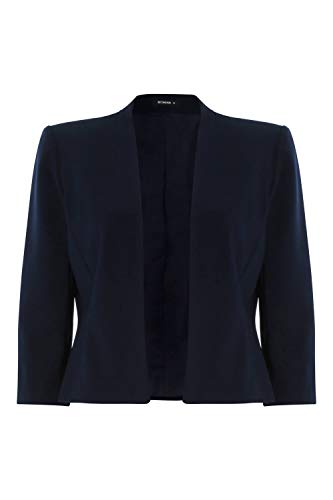 Roman Originals Bolero Jacket for Women UK Ladies Shrug Tailored Rochette Suit Blazer Formal Wedding Guests Crepe Crop Stretch Smart Cover Up Office Work Slim Edge to Edge - Navy Blue - Size 16