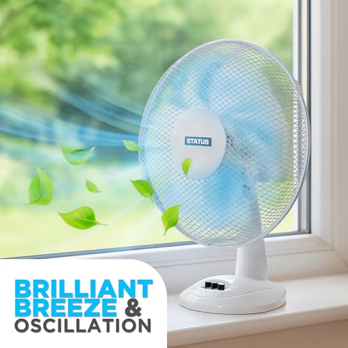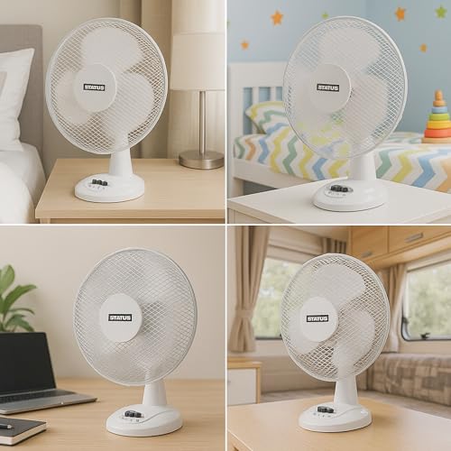 Status 16 inch Oscillating portable Desk Fan | 3 Speed Adjustable Angle Fan | White | S16DESKFAN1PKB