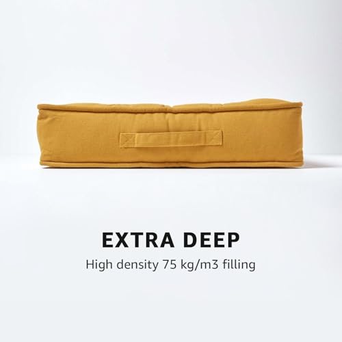 Homescapes Cotton Armchair Booster Cushion in Mustard Size: 50 cm x 50 cm Mustard 50 cm x 50 cm
