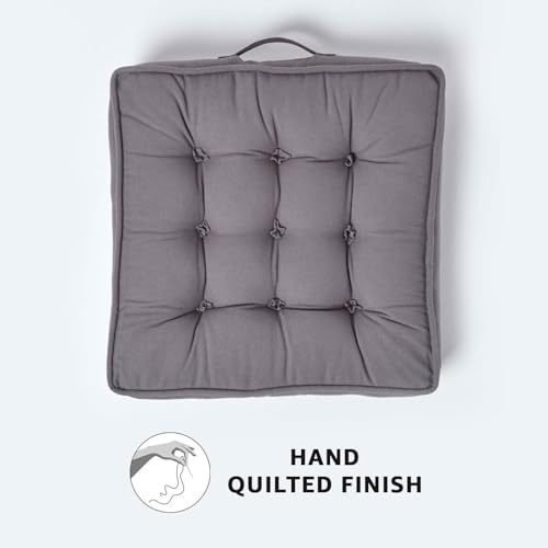 Homescapes Unisex Cotton Armchair Booster Cushion in Charcoal Size: 50cm x 50cm Charcoal 50cm x 50cm female