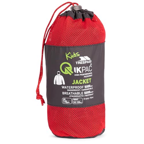 Trespass Kids Waterproof Jacket Qikpac X - Wind Resistant Lightweight Breathable Rain Coat, Boys Girls Foldable Packaway Jacket, Children's Unisex Shell Jacket for School Walking Travelling