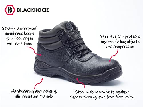 Blackrock Waterproof Chukka Safety Work Boots, Steel Toe Cap Safety Boots, Mens Womens Ladies, Work Shoes, Gardening, Lightweight, Leather, Wide Fit, Non Slip, On Site - Size 7 / EU 41