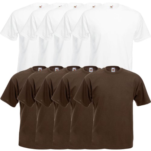 Fruit of the Loom Valueweight Men’s T-Shirt, Pack of 5, 2white/2black/2grey/2chocolate/2olive, L