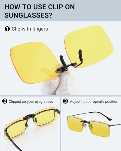 TERAISE Clip-on Sunglasses Polarized Lens For Prescription Glasses Night Vision Sunglasses for Outdoor Walking Driving Fishing Cycling HD Anti-Glare UV400 for Men and Women Set of 2 Driving Glasses