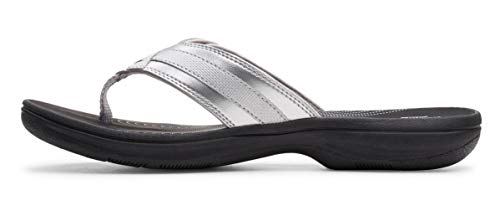 Clarks Women's Breeze Sea Flip-Flop, Silver Synthetic/Black Sole, 7.5 UK