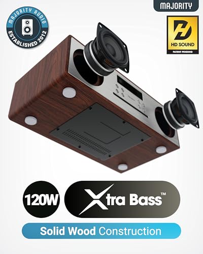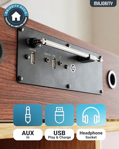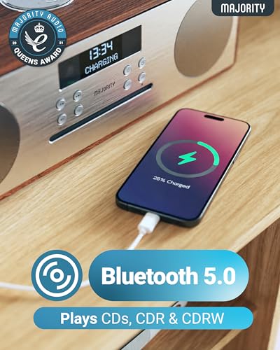 DAB+ Radio & CD Player | Compact Wooden HiFi Music System | Bluetooth Digital Home Stereo | FM, 20 Presets, Radio Alarm, & Remote Control | AUX & USB Input | USB Charging | MAJORITY Oakington (Walnut)