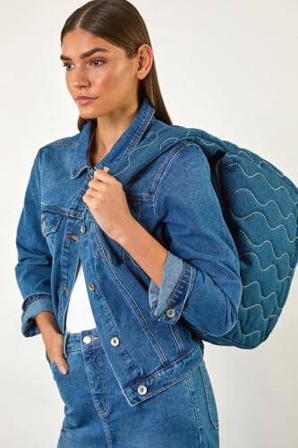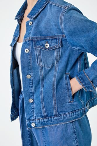 Roman Originals Jean Denim Jacket for Women UK Ladies 100% Cotton Summer Casual Stretch Crop Smart Utility Trucker Biker Fitted Vintage Wash Faded Classic Jeans Work Twill - Blue - Size 20