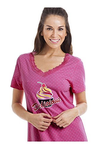 Camille Womens Cupcake Motif Cotton Summer Nightshirt in Fuchsia Size: 10-12 Fuchsia 10-12