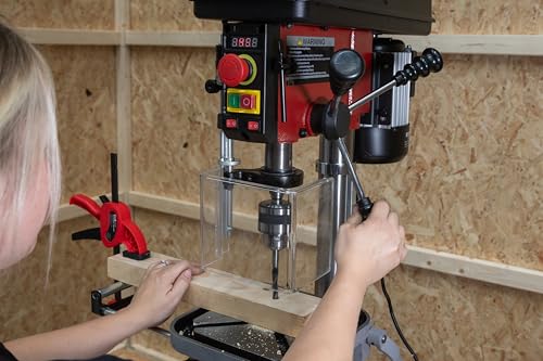 LUMBER JACK Pillar Drill Press Variable Speed Digital LED Display, 16mm Chuck Takes MT2, 550W Motor with Cast Iron Table Top Also Includes Cross Line Laser and Worklight