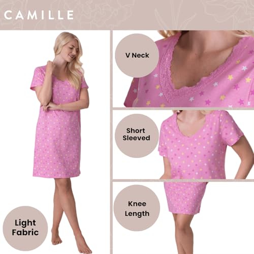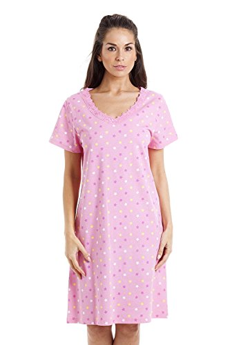 Camille Womens Multicoloured Star Print Cotton Summer Nightshirt in Pink Size: 14-16 Pink 14-16