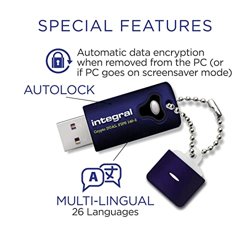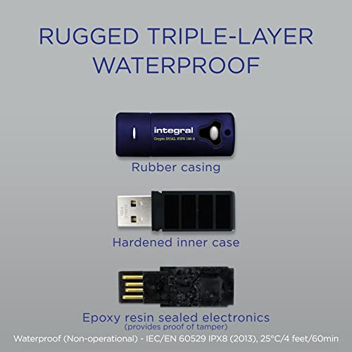 Integral 64GB Crypto-140-2 Dual Password 256-Bit Hardware Encrypted 3.0 USB Secure Dual Password Flash Memory Drive - Certified to FIPS 197, Protection & Rugged Triple-layer Waterproof Design XTS-AES