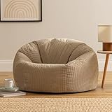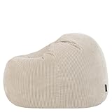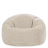 icon Kingston Cord Bean Bag, Beige, Large Adult Bean Bag Chair with Filling Included, Comfy Chair, Living Room Furniture, Bedroom Furniture