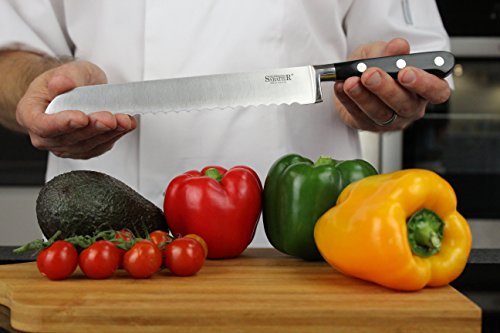 Taylors Eye Witness Sabatier Professional Serrated Bread Knife - 8in/20cm Full Tang Blade Forged from High Graded Taper Ground Stainless Steel, Triple Rivet Comfort Handle. Sharper for Longer