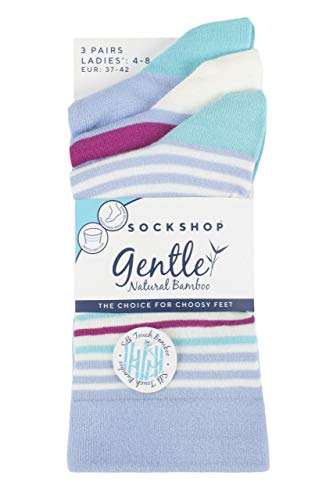 SockShop Ladies Gentle Bamboo Socks with Smooth Toe Seams In Plains and Stripes Pack of 3 Cornflower 4-8 Ladies