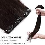 Elailite Brown Clip in Hair Extensions Real Human Hair - 8 Pieces Thin Weft Full Head Remy Hair Straight - #2 Dark Brown - 16 Inch (65 g)