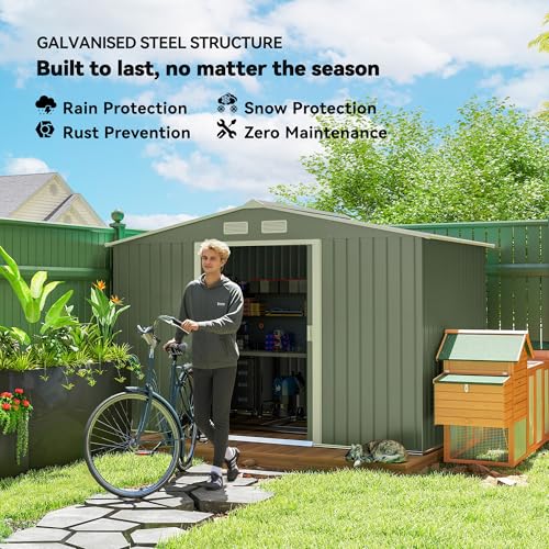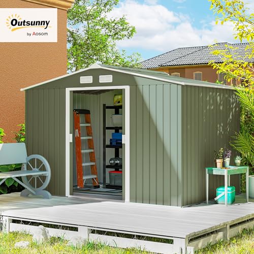 Out of stockOutsunny 9 X 6Ft Outdoor Storage Garden Shed Sliding Door Galvanised Metal, Green