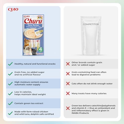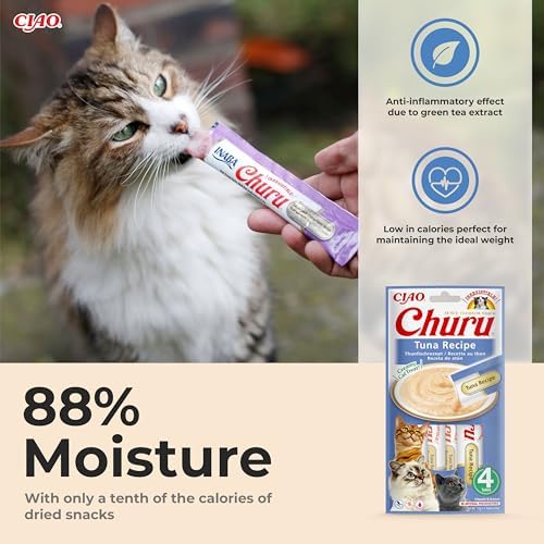 Ciao Churu Sticks by INABA Cat Treat - Tuna Flavour 12 Pack (48 x 14g total) / Soft & Creamy Cat Treat, Delicious & Healthy Snack, Squeezable Purée Food Topper, Pill Assist, Natural, Grain Free