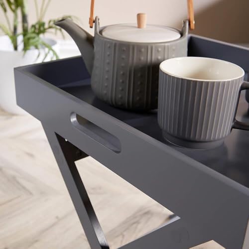 Home Source Butlers Side Table Portable Wooden Food Drink Serving Tray, Grey, 40cm