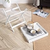 Home Source Folding Butlers Side Table Portable Wood Food Serving Tray Drink Tea in White White