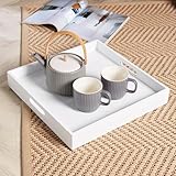 Home Source Butlers Side Table Portable Wooden Food Drink Serving Tray, White, 40cm
