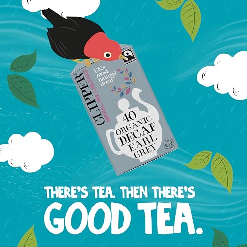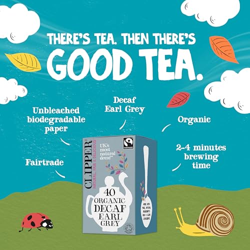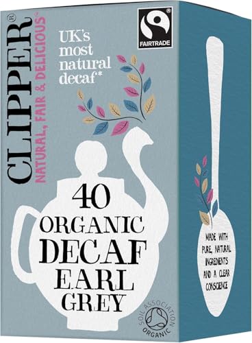 Clipper Fairtrade Organic Decaf Earl Grey Tea Bags | Natural, Unbleached, Plant-Based Biodegradable & Non GM Black Tea | Eco Conscious Decaffeinated Tea Bags | Individually Wrapped (40 Teabags)