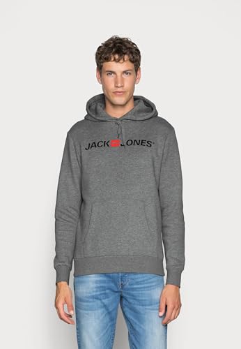 JACK & JONES Male logo hoodie, Grey (Medium Grey Melange/Reg Fit), XS