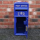 Royal Mail Post Box Scottish with Floor Stand ER Cast Iron Wall Mounted Wedding Authentic Pillar Replica Lockable Post Office Letter Box Blue