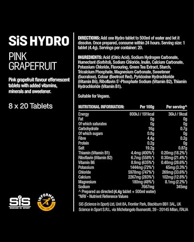 Science in Sport Hydro Electrolyte Tablets 160 pcs. Pink Grapefruit – Vegan & Gluten-Free, Ideal to Promote Hydration and Maintain Electrolytes Balance (Packaging May Vary)