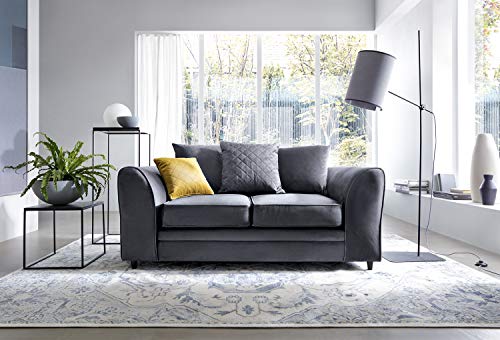 Abakus Direct 2 Seater Sofa - Stylish Chicago Two Seater Sofas for Living Room with Water Repellent Velvet Fabric | Contemporary Living Room Furniture in Dark Grey | 160Wx89Dx78H