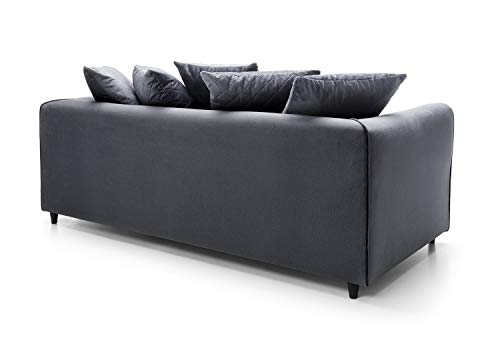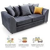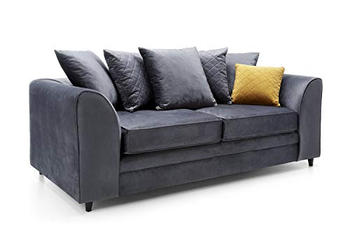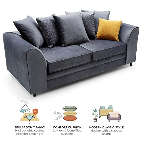 Abakus Direct 3 Seater Sofa - Stylish Chicago Three Seater Sofas for Living Room with Water Repellent Velvet Fabric | Contemporary Living Room Furniture in Dark Grey | 180Wx89Dx78H