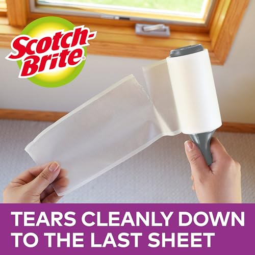 Scotch-Brite Pet Extra Sticky Lint Roller, 48 sheets - Designed for Pet Hair, Easy Tear Sheets, Safe on Fabrics , White, Black