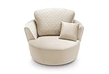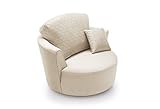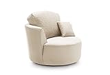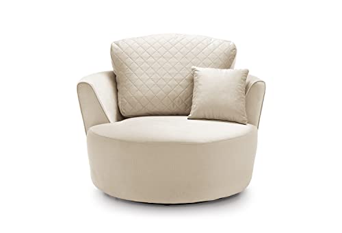 Abakus Direct Swivel Chairs for Living Room - Stylish Chicago Swivel Armchair with Water Repellent Velvet Fabric | Contemporary Spinning Tub Chair in Cream | 115Wx115Dx90H