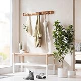 Umbra Flip Wall-Mounted Coat Rack, 8 Hooks – Modern, Space-Saving Storage for Jackets, Bags, Entryway, Mudroom, Bathroom, Bedroom – Light Walnut/Gold