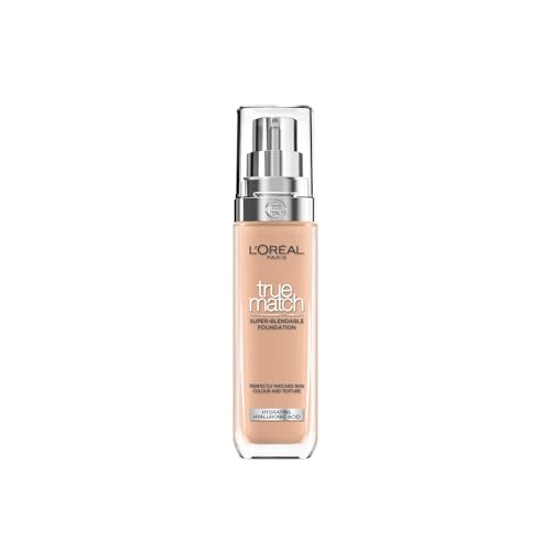 L'Oréal Paris Foundation for Face, Skincare Infused with Hyaluronic Acid, True Match Hydrating Liquid Foundation for All Skin Tones, SPF 16, 10W, 30 ml
