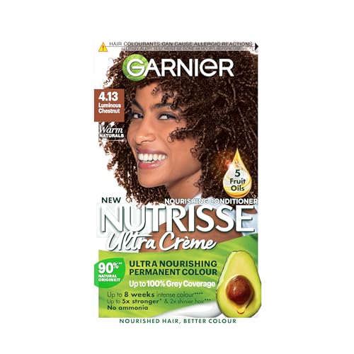 Garnier Nutrisse Ultra Color Hair Dye, Vegan, 1.10 Infinite Black. Ensures 100% grey coverage and deep, endless shine with 8-week colour. No-ammonia, vegan formula for an intense, dramatic black.