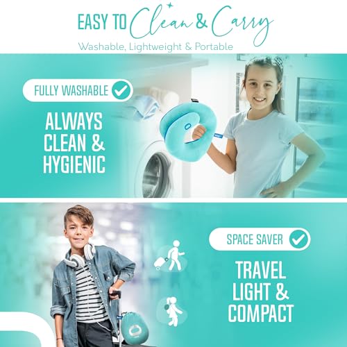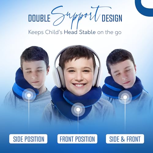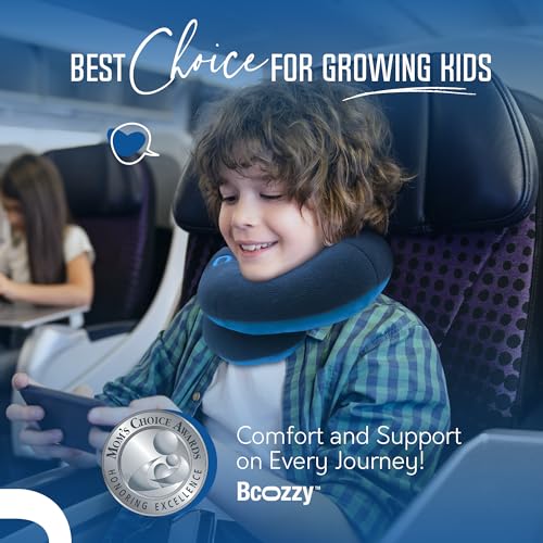 BCOZZY Kids Chin Supporting Travel Pillow for Ages 8–12- Patented Soft Neck Pillow for Head and Chin Support in Car Seat and Airplane. Comfortable Travel Essential. Medium Size, Bag, Pink