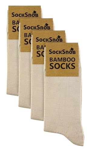 Sock Snob - 4 Pairs Bamboo Finely Knit Thin Super Soft Suit Socks for Men & Women (as8, numeric, numeric_6, numeric_11, regular, regular, Natural)