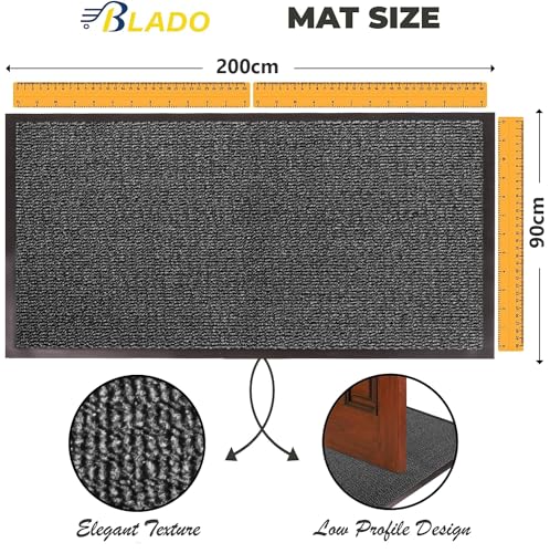 BLADO Washable Door Mats - Non-Slip Heavy Duty Doormats - Stylish Large Rubber Mat - Perfect Dust Grabbing Indoor & Outdoor (Grey, 90cm x 200cm)