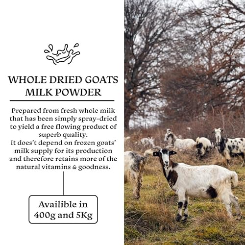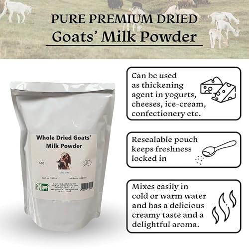 Whole Dried Goats' Milk Powder, Rich Creamy Flavour, Resealable Pouch for Freshness, Easy Mixing, Natural Vitamins Retained, Versatile Ingredient for Yogurts and Cheeses - 400g