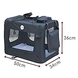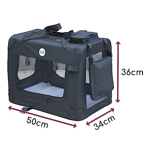 HugglePets Foldable Fabric Pet Crate Carrier - Black (Small 50 x 34cm) Lightweight & Ventilated Double Door Carrier for Dogs & Cats with Sheepskin Mat. Ideal for Home & Travel.