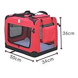 HugglePets Foldable Fabric Pet Crate Carrier - Red (Small 50 x 34cm) Lightweight & Ventilated Double Door Carrier for Dogs & Cats with Sheepskin Mat. Ideal for Home & Travel.