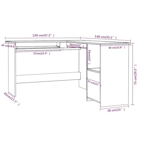 vidaXL L-shaped Corner Desk Concrete Grey 120x140x75 cm Engineered Wood, Grey