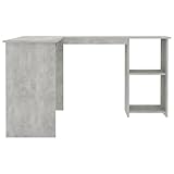 vidaXL L-shaped Corner Desk - Modern Engineered Wood Office Desk - Concrete Grey, Durable and Spacious with Pull-Out Keyboard Tray and 2 Open Shelves
