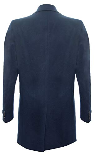 Infinity Leather Mens Long Wool Slim Fit Overcoat in Navy Size: Small Navy S
