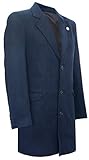 Tru Clothing Mens 3/4 Long Wool Navy Crombie Overcoat Jacket Blinders Trench Slim Fit Coat 34