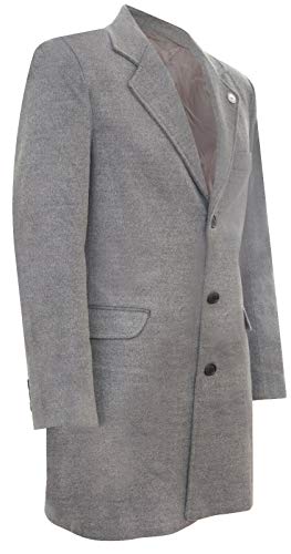 Tru Clothing Mens 3/4 Long Wool Grey Crombie Overcoat Jacket Blinders Trench Slim Fit Coat 48
