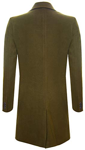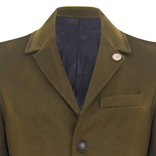 Tru Clothing Mens 3/4 Long Wool Olive Crombie Overcoat Jacket Blinders Trench Slim Fit Coat 44